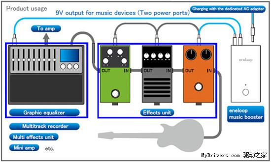 這款新的電池主要為音樂愛好者準備,可為放大器、打鼓機、均衡器、多軌錄音機等使用9V電源的音樂設備提供穩定的電流供應,必要的時候該電池還支持同時給串聯起來的多臺設備供電。音樂人士可以把這款eneloop music booster作為外出演出時的備用電源,另外使用充電電池可以減少經常更換的麻煩,并減少廢舊電池的帶來的污染。