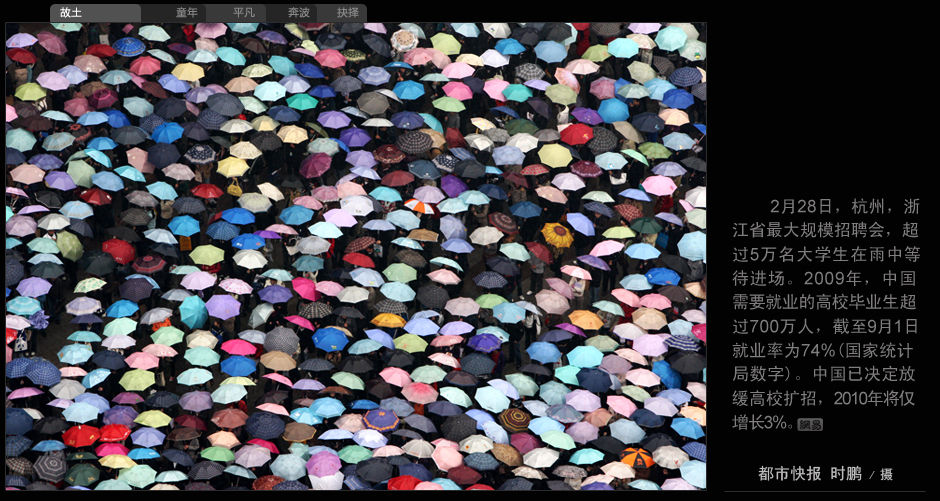 2月28日,杭州,浙江省最大規(guī)模招聘會,超過5萬名大學(xué)生在雨中等待進(jìn)場。2009年中國需要就業(yè)的高校畢業(yè)生超過700萬人,截止9月1日就業(yè)率為74%(國家統(tǒng)計局?jǐn)?shù)字)。中國已決定放緩高校擴(kuò)招,2010年將僅增長3%。 都市快報 時鵬/攝影