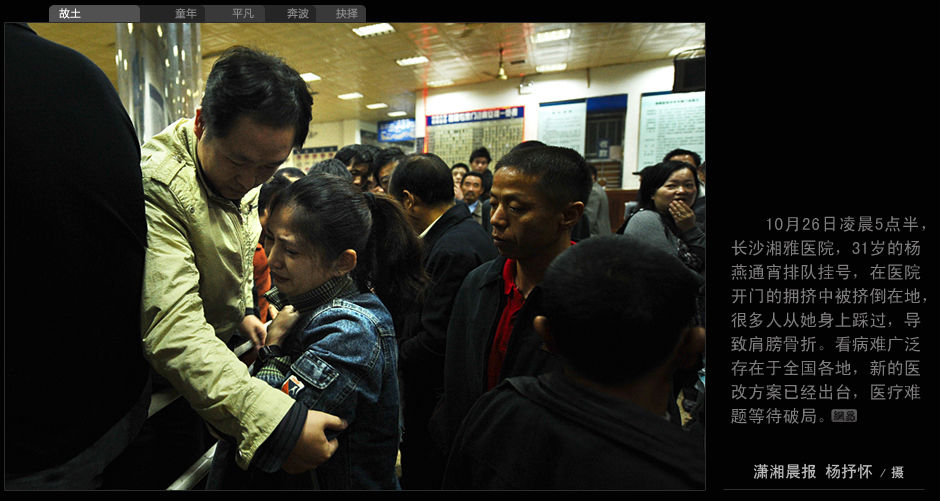 10月26日凌晨5點半,長沙湘雅醫(yī)院,31歲的楊燕通宵排隊掛號。在醫(yī)院開門的擁擠中被擠倒在地,很多人從她身上踩過,導(dǎo)致肩膀骨折。看病難廣泛存在于全國各地,心得醫(yī)改方案已經(jīng)出臺,醫(yī)療難題等待破局。 瀟湘晨報 楊抒懷 攝