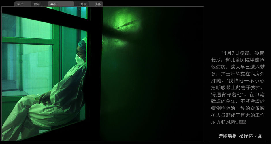 11月7日凌晨,湖南長沙,省兒童醫院甲流搶救病房,病人早已進入夢鄉,護士葉輝靠在病房外打盹,“我怕他一不小心把呼吸器上的管子拔掉,得通宵守著他”。在甲流肆虐的今年,不斷激增的今年,不斷激增的病例給救治一線的眾多醫護人員形成了巨大的工作壓力和風險。(瀟湘晨報 楊抒懷/攝)