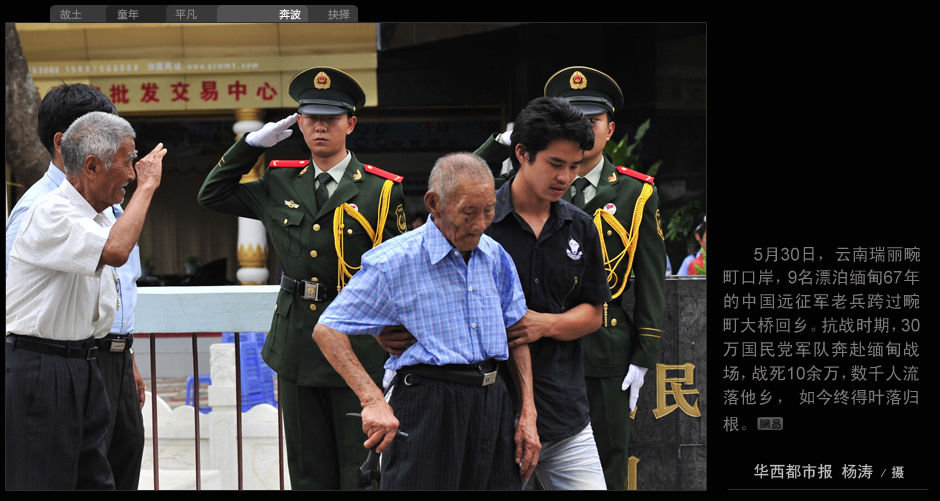 5月30日,云南瑞麗畹町口岸,9名漂泊緬甸67年的中國遠征軍老兵跨過畹町大橋回鄉。抗戰時期,30萬國民黨軍隊奔赴緬甸戰場,戰死10余萬,數千人流落他鄉,如今終得葉落歸根。 華西都市報 楊濤 攝