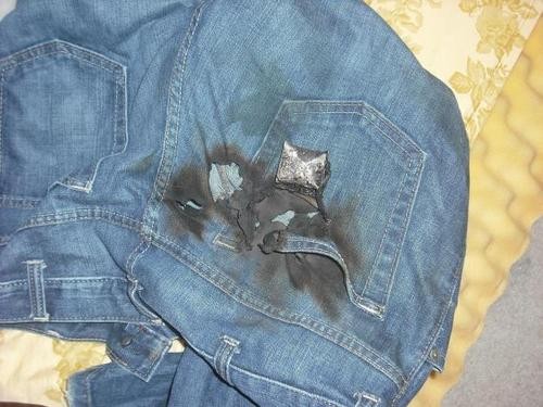 被電池燒毀的褲子