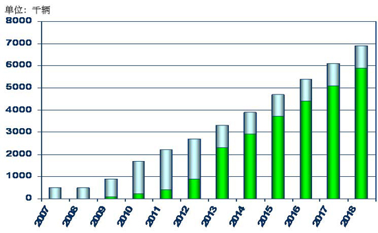 圖1:全球混合動力汽車(HEV)、充電式混合動力電動汽車(PHEV)、純電動汽車(EV)市場規模