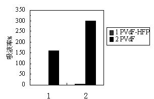 在RH<3%的環(huán)境中,將待測(cè)膜在1M LiPF6/EC+DMC(v/v=1:1)電解液中浸泡10分鐘后取出,夾在濾紙中吸去表面游離電解液,分別稱取吸液前后待測(cè)膜的重量W1、W2,吸液率的計(jì)算如下: