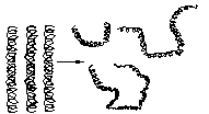 由圖4可見,采用PVdF為骨架材料時(shí)的電解質(zhì)膜其吸液率幾乎是PVdF-HFP骨架電解質(zhì)膜的兩倍。從高分子溶液的結(jié)構(gòu)上看,PVdF與PVdF-HFP都屬于線型高分子聚合物,在溶液中均呈線團(tuán)狀無規(guī)蜷曲,如圖5所示。如果在溶液中加入增塑劑,增塑劑進(jìn)一步削弱分子鏈間的作用力,就起到了對(duì)聚合物稀釋的效果。