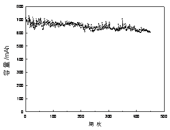分別以PVdF和PVdF-HFP為聚合物骨架材料拉制成的電解質(zhì)膜、電極膜組裝成電池。實(shí)驗(yàn)結(jié)果證實(shí)了前面的推斷。PVdF體系的聚合物鋰離子電池可在0.5C倍率下循環(huán)400多周(見圖9),而PVdF-HFP體系的聚合物鋰離子電池最高循環(huán)壽命則只有近200周。