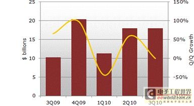 根據市場研究機構Solarbuzz調查,2010年第三季全球太陽能電池出貨達到4.0GW,與去年同期相比成長了107%;以產業整體營收方面來看,本季達到179億美元,與去年同期相比也有74%的成長。