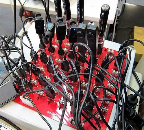 你是否還飽受USB接口的困擾?可能你覺得49個USB接口不夠用,那么來看看這80個USB接口充電器吧,大家都知道現在很多數碼產品通過USB口供電,包括智能手機,播放器等,80個USB接口提供每個80mA的電流供數碼產品充電,這塊板上有3個電源供電接入口。