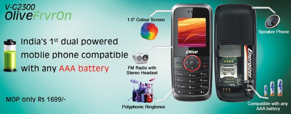 對使用者來說,手機續航力永遠是大家最頭痛的問題。Olive Telecom India 這家印度公司聽到了大家的心聲,推出了 FrvrOn V-G2300 這款用 AAA 電池蓄電的 GSM 手機(對,就是傳說中的2.5G手機),干電池幾乎可以隨處充電。這部看似陽春的手機,搭載1.5寸彩色屏幕和 FM 收音機的功能。更酷的是,這款手機相容于600mAh的鋰電池和3A電池,把鋰電池當做原本的手機第一電池,單顆電池就當做急用。