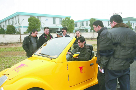 長興經濟開發區的天能能源科技有限公司,一進廠區,3輛不同顏色的電動汽車正被一群客戶圍著試車,外形非常漂亮,使用也非常簡單。