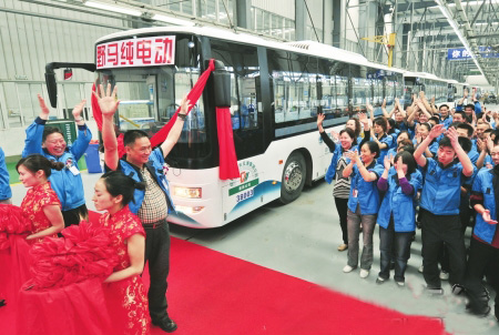 昨日13時13分,在陣陣鞭炮聲中,川汽集團常務副總經理、新能源汽車項目組組長曹國棟啟動按紐,4輛嶄新的第二代純電動公交車緩緩駛下生產線。今日,新下線的這4輛車,將與上海雷博公司的4輛電動公交和蜀都客車廠的2輛電動公交一起,為成都市中心城區的街頭新增一道靚麗的風景線。10輛零排放、低噪音的純電動公交車,將在16路和28路開始示范運營,電動汽車由此進入成都百姓生活。