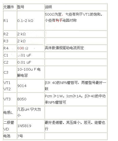 這兩種電路都可以將1.2V升高到3.3V以上,第一種電路如果在變壓器上加繞正反饋線圈。可以免去振蕩電路。使電路更加簡潔。但使用這種電路計算較復雜。輸出功率較難調節,變壓器的繞制也有些麻煩。第二種只需一個小電感。電感量也沒有較大的要求,調節電感的驅動電流,就能方便地調節輸出電壓。在此采用第二種電路。