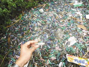 大坑里堆滿廢舊干電池
