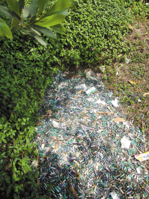 李女士說,大量的干電池堆在路邊沒有作任何處理,經日曬雨淋,可能會對環境造成污染。她本來打算想辦法自行把這些干電池清理掉,并在這里拉一條橫幅,寫上“注意環保,愛護地球!”的警示語,提醒市民注意關愛自己生存的環境。但是,她又不知道把這些干電池送往何處處理,只好作罷。她左思右想后,于是撥打本報熱線電話,希望借本報進行呼吁,讓有關部門盡快把干電池清理干凈。