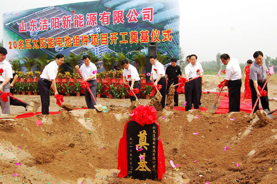 潔陽(yáng)新能源20兆瓦太陽(yáng)電池組件項(xiàng)目開(kāi)工奠基