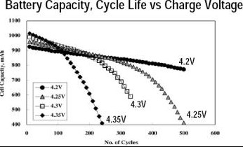 圖三 充電電壓對電池容量的影響 (Source: Journal of Power Sources)