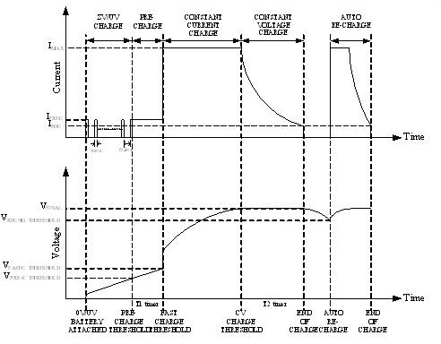 支持雙充電定時器保護--預充電定時, 恒壓充電定時(最大: 5小時, 或不使用)