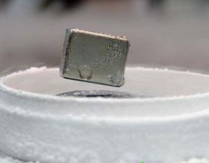 制作這種電池的材料是二氟化氙(XeF2),一種白色晶體,科學家把它裝進小小的金剛石壓力艙里,加上超強的壓力,結果是分子間越來越近,首先變成2維半導體,然后,當壓強達到百萬倍的大氣壓,分子形成3維金屬網(wǎng)狀結構,使得機械能全部儲存在分子間轉化為化學能。
