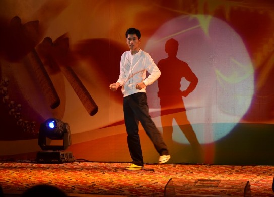 《鼓舞飛揚》幾秒鐘之后突然由遠及近從舞臺上傳來鼓聲,伴隨著鼓聲從稀到密,從小到大,宴會廳的燈光一盞一盞的也亮了起來,所有人都把目光停留到了這個早已被鎂光燈聚焦的地方,抑揚頓挫的立體鼓點鏗鏘動聽充滿激情,熱情奔放,催人奮進,也昭示精進能源的員工開拓進取的激情和對未來無比堅定的信心和勇氣,現場不時爆發出一陣陣熱烈的掌聲,整個宴會廳被一種豪邁、自信所包圍。