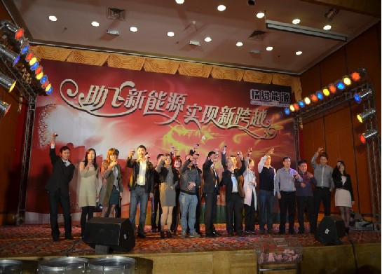 2011年12月15日晚,精進能 源有限公司“助飛新能源;實現新跨越”團年晚宴在鹿茵大酒店隆重舉行,公司的總裁陳光森,廣東省科技廳的周局長、周廳長等領導出席本次團年盛宴,和精進能源全體員工約二千人濟濟一堂,觥籌交錯,共度美好的時光。