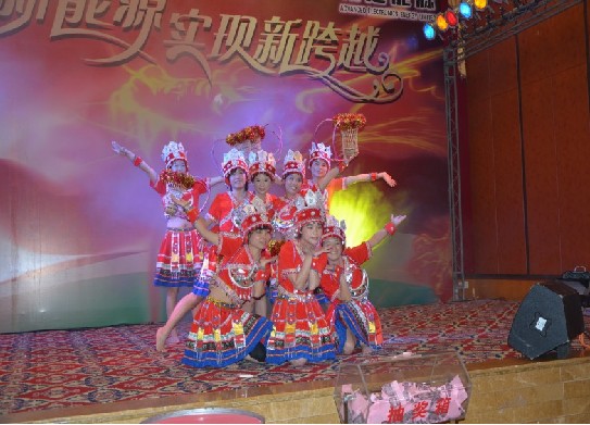 營銷部美女們表演開場紅的《苗嶺連北京》唯美的舞姿贏得了滿堂喝彩