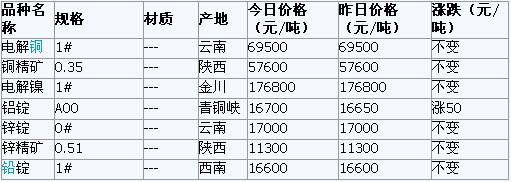 2011年5月31日西安有色金屬市場行情