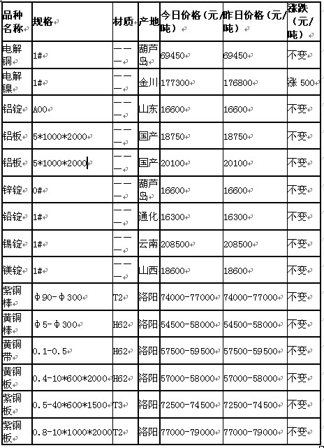 上一篇: 2011年6月1日天津有色金屬市場行情