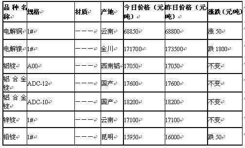 - 2011年6月14日昆明金屬有色市場(chǎng)行情
