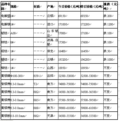 上一篇: 2011年6月16日北京有色金屬市場行情