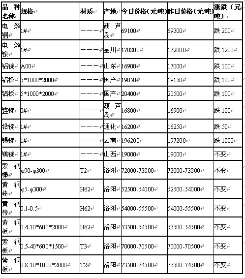 - 2011年6月16日濟(jì)南有色金屬市場(chǎng)行情