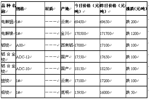上一篇: 2011年6月16日西安有色金屬市場行情