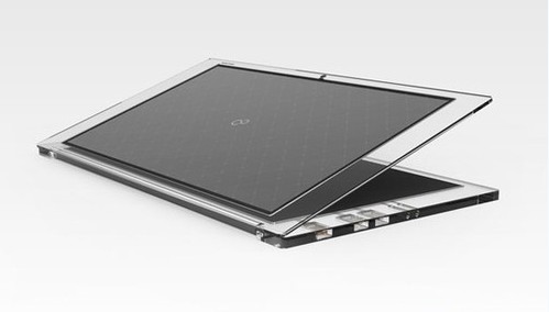這款名為“Luce”的概念筆記本獲得了富士通2011年設(shè)計(jì)大賽的提名獎(jiǎng)。這款筆記本使用了透明的聚碳酸酯材質(zhì),四周通透,中間純黑,顯得時(shí)尚高貴;整機(jī)的重量還不到4磅(1.8千克),纖薄便攜。