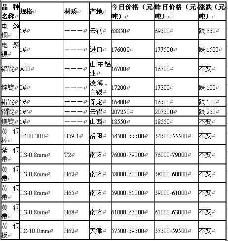 上一篇: 2011年6月2日北京有色金屬市場行情