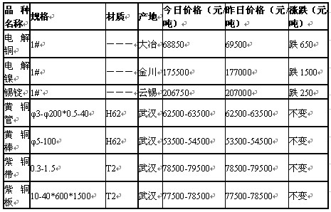 2011年6月2日武漢有色金屬市場行情