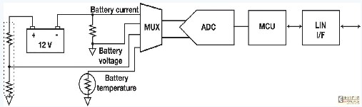 為了減少故障,需要精確地檢測電池的電壓、電流和溫度,對結果進行預處理,計算充電狀態和運行狀態,將結果發送到發動機控制單元 (ECU),以及控制充電功能。