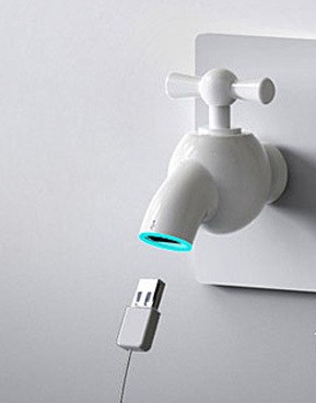 來自設計師齊維嘉(Qi Weijia)的創意:水龍頭USB充電器(Charging Tap),擰開水龍頭就能通過USB口為手機等設備充電,不需要了又能關掉水龍頭——你愿意在墻上插這么一個可愛的水龍頭么。