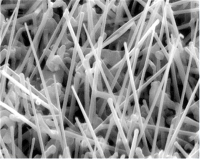 能源部下屬的勞倫斯伯克利實驗室材料科學分部的楊培東(音譯)領導的科研團隊首次利用以溶液為基礎的陽離子交換化學技術,制造出了高質(zhì)量的以半導體硫化鎘為核、硫化銅為殼的核/殼納米線太陽能電池。這種廉價且易制造的電池的開路電壓和填充值(這兩者共同決定太陽能電池能產(chǎn)生的最大能量)都高于傳統(tǒng)的平板太陽能電池,而且其能源轉(zhuǎn)化效率為5.4%,可與傳統(tǒng)太陽能電池相媲美。