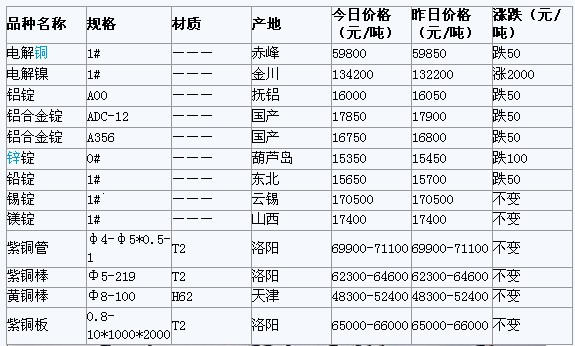 2012年4月5日沈陽有色金屬市場行情