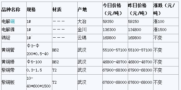 2012年4月6日武漢有色金屬市場行情