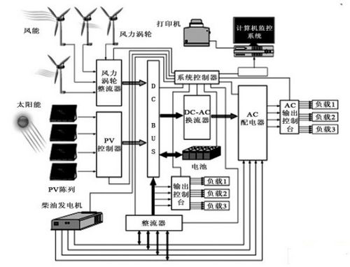 圖1 風能/ 太陽能/ 柴油機混合發電系統