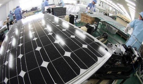 資料圖:江蘇南通一光伏企業(yè)職工在生產(chǎn)太陽能電池組件。