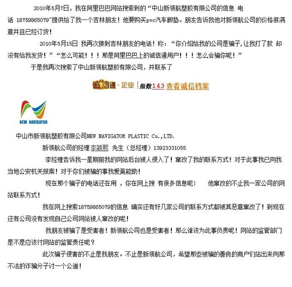下面是這個號碼在2010年阿里巴巴上行騙的一個證據截圖,請大家警惕!